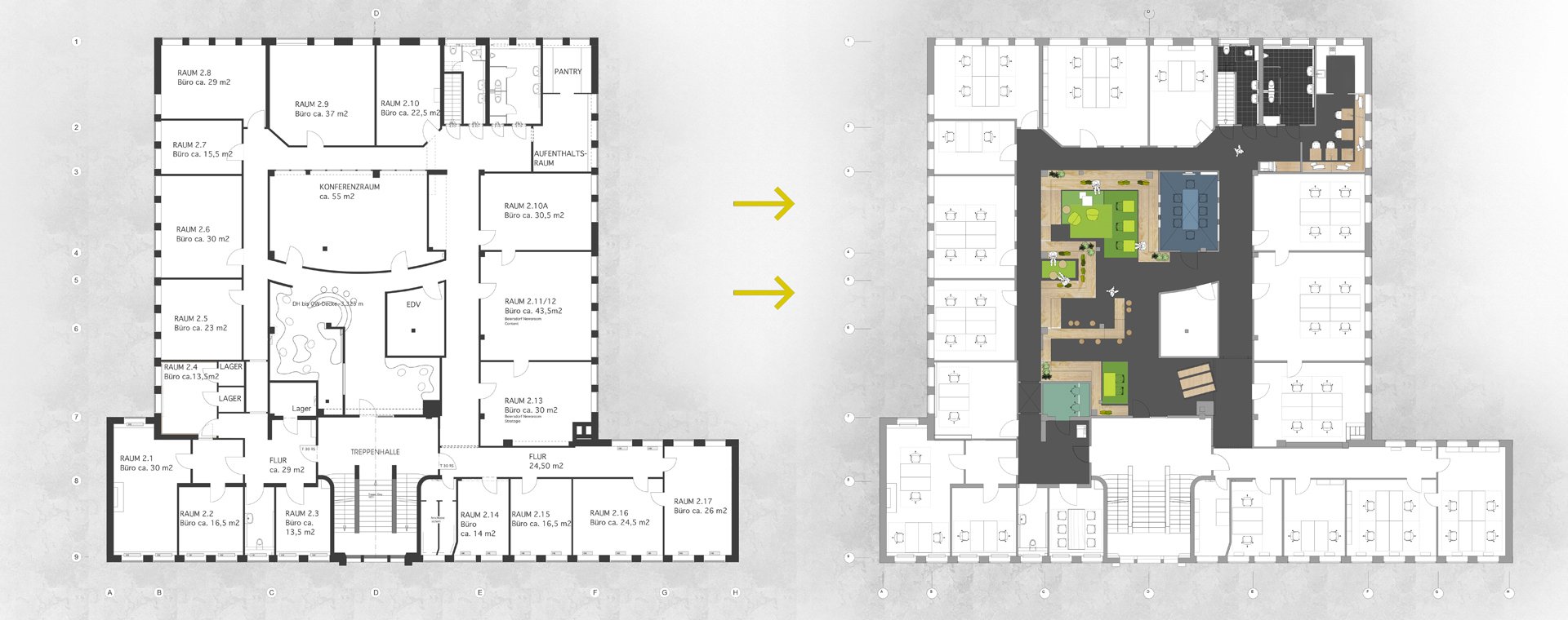 Neugestaltung der Büroflächen im 1.OG und DG